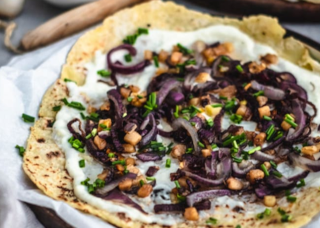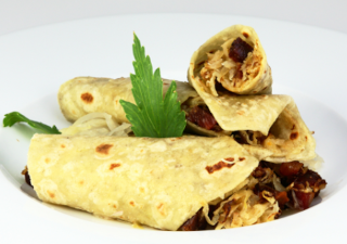 Gyros z kuřecího nebo vepřového masa, křupavý salátek, rajčátka, červaná cibule a tzatziki a to vše v tortile