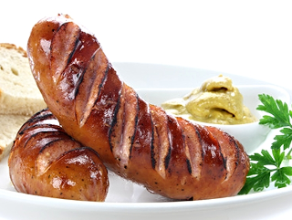 Klobása na grilu 200g (různé druhy), hořčice, křen, chleba